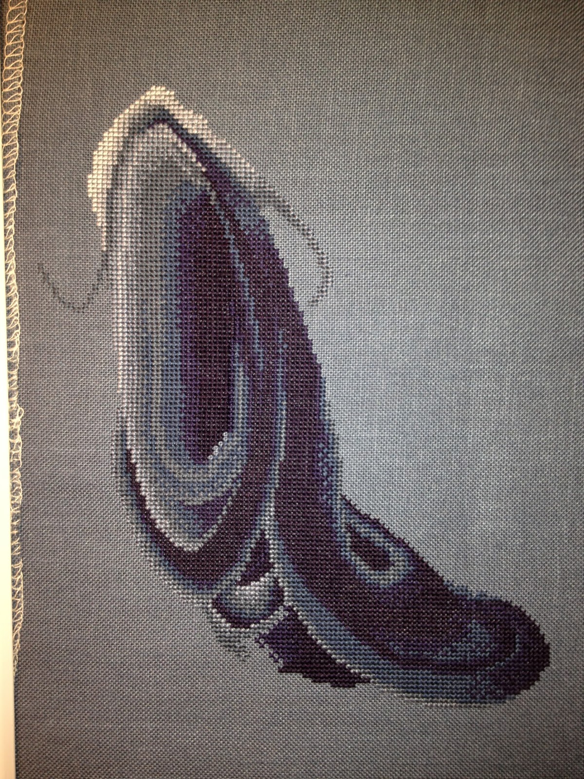 I stitched a lot this weekend but didn't make that much progress. I guess the Olympics distracted me. I am stitching my way up the design right now. I think I am going to start at the top next time. It is so hard to work uphill :-)